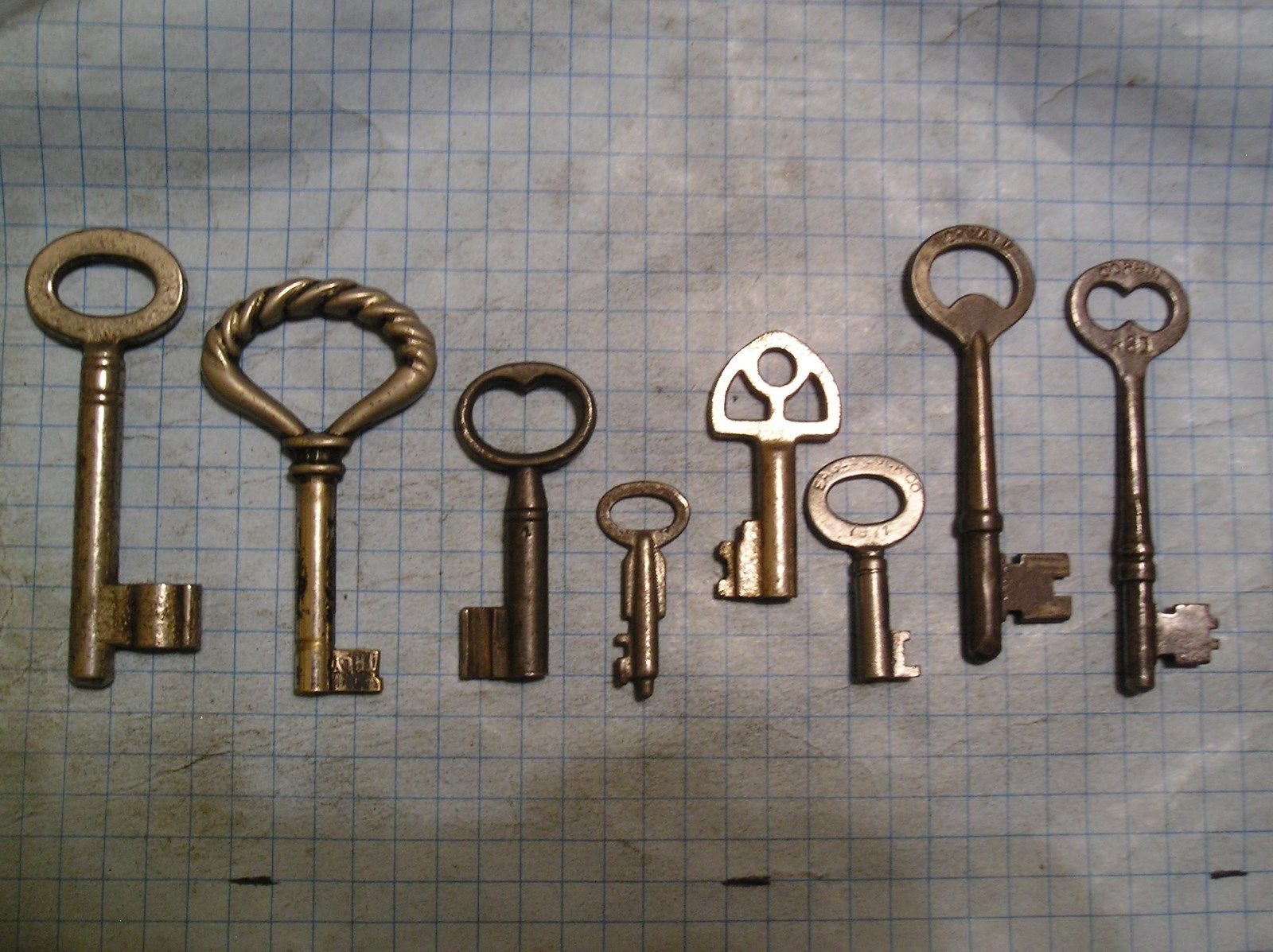 Title (ebay affiliate link): LOT OF 8 ANTIQUE SKELETON, FURNITURE, BARREL, CABINET AND OLD LOCK KEYS