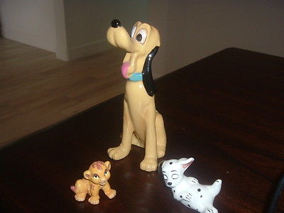3 Vintage Walt Disney Ceramic Figurines Pluto Simba Dalmatian Pup