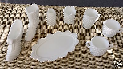 Assorted Lot White Hobnail Fenton Milk Glass Art Shaker Pitcher Cream Sugar Vtg