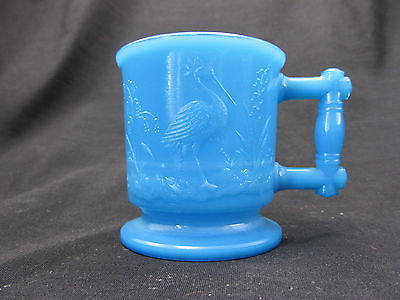 EAPG Heron and Peacock Child's Mug Blue Milk Glass Opaque Stork Kingfisher