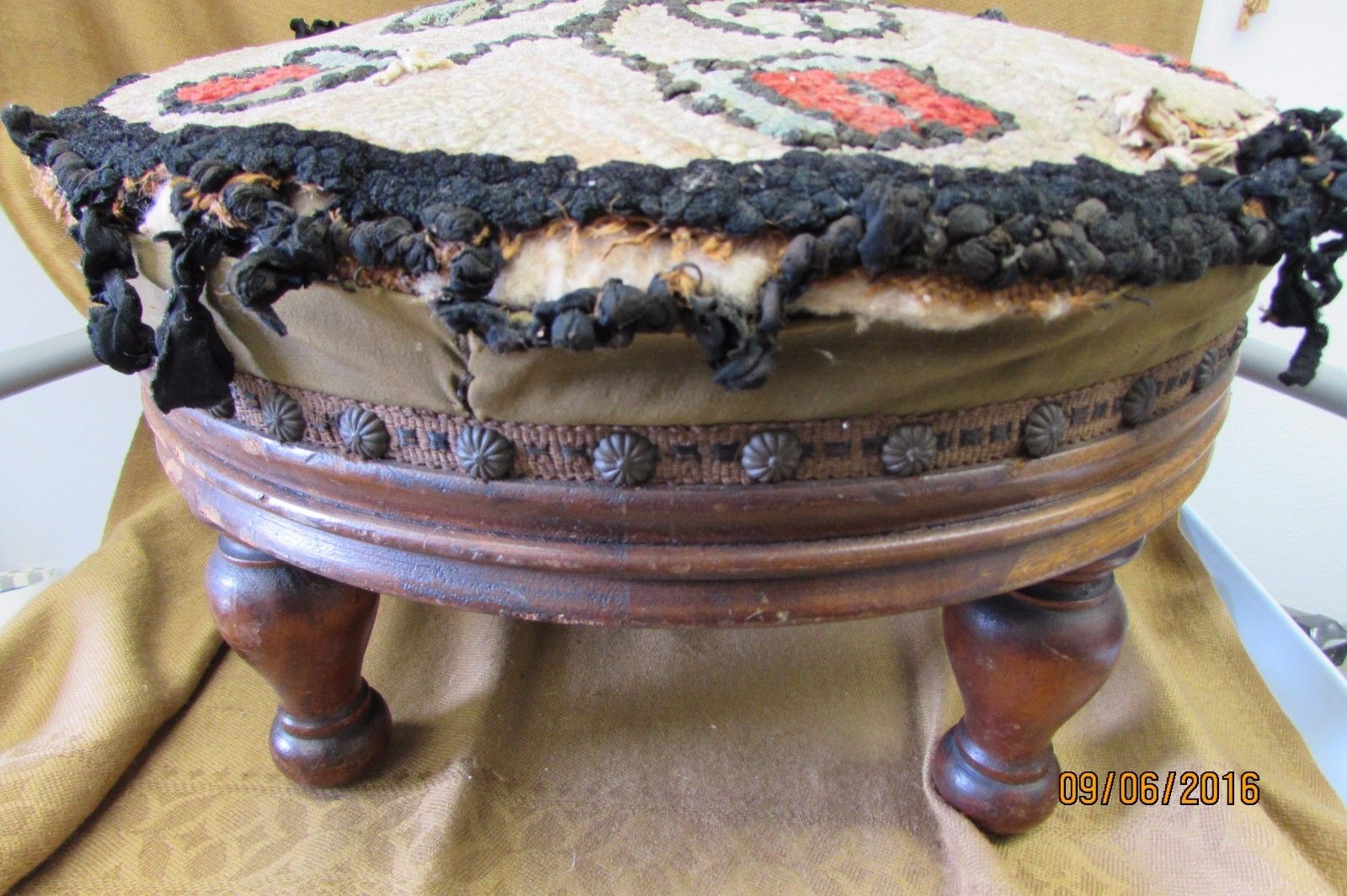ANTIQUE ROUND FOOT STOOL BENCH OTTOMAN