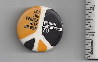 1960s LET THE PEOPLE VOTE Vietnam Referendum 70 PEACE SIGN pin button anti war
