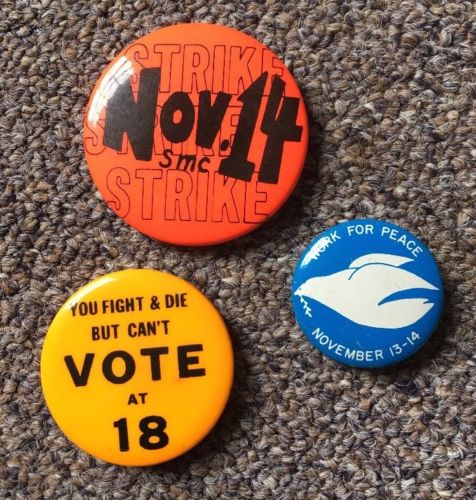 Title (ebay affiliate link): Vintage 1960S 1969 Protest Pins Button Work For Peace Anti Vietnam War Hippie