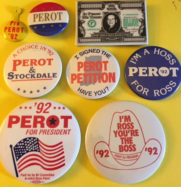 Title (ebay affiliate link): Seven Ross Perot 1992 Political Campaign Pin Pinback Buttons and One Tab