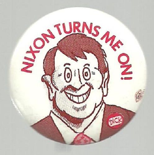 Title (ebay affiliate link): NIXON TURNS ME ON UNUSUAL CARTOON POLITICAL CAMPAIGN PIN BUTTON