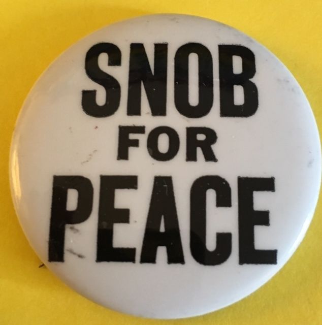 Title (ebay affiliate link): Snob for Peace 1 3/4 Inch Cause Pin Pinback Button