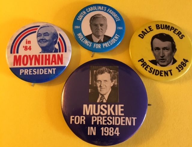 Title (ebay affiliate link): Four Interesting Hopefuls for President Political Campaign Pin Pinback Buttons