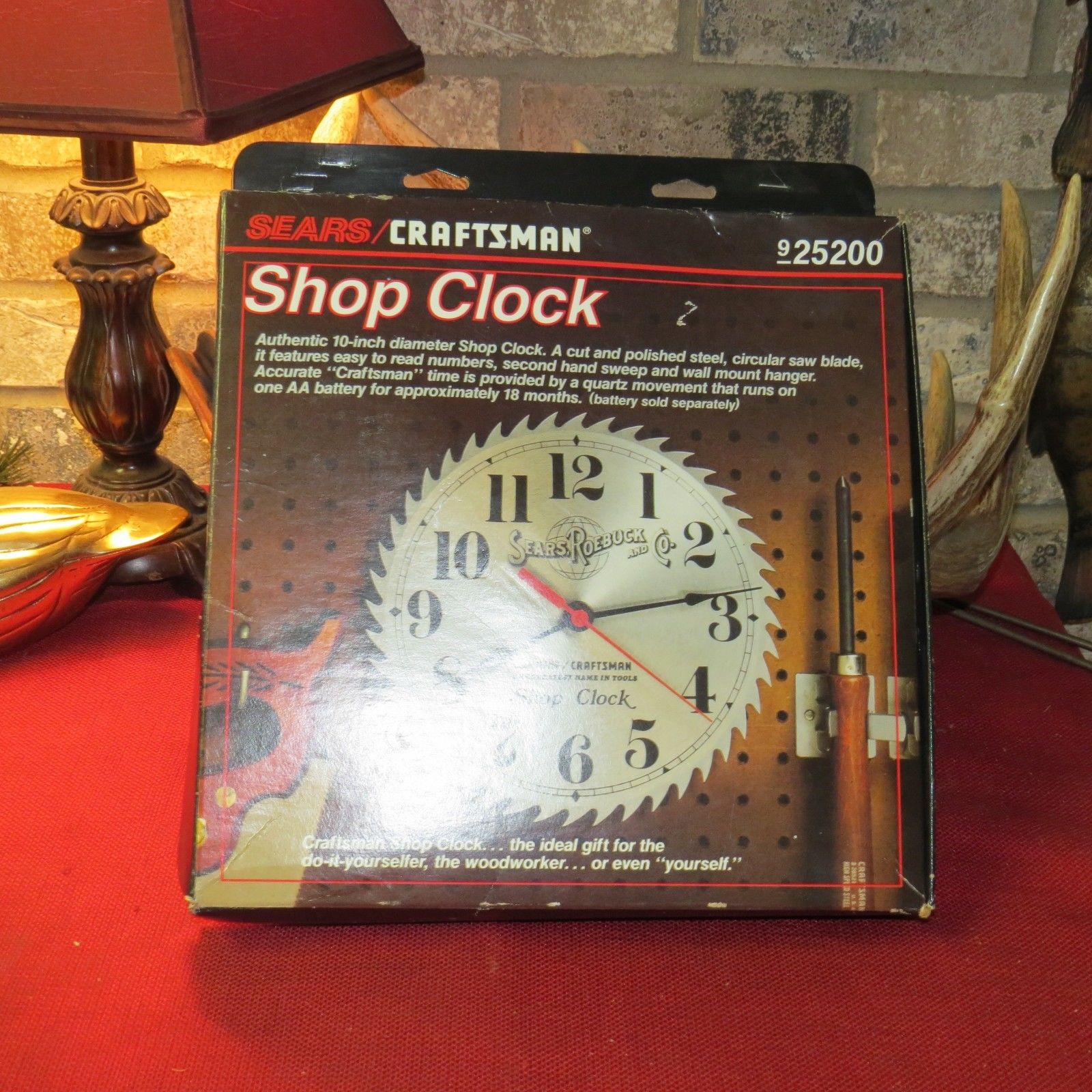Title (ebay affiliate link): New In Box Vintage SEars, Roebuck & Co. Saw Blade Shop Wall Clock, USA.