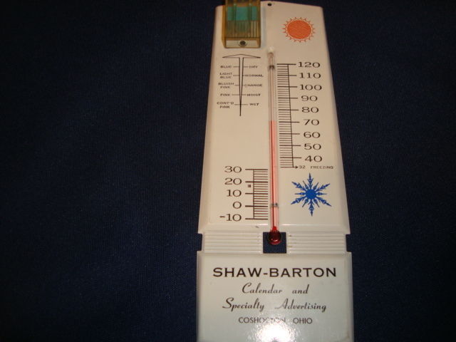 Title (ebay affiliate link): VINTAGE THERMOMETER SHAW BARTON COSHOCTON OHIO RAIN GUAGE