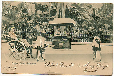 POSTCARD 1904 HONG KONG POSTMARK SEDAN CHAIR RICKSHAW
