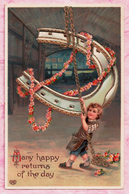 Title (ebay affiliate link): SUPER VIBRANT "SMITHY" Blacksmith LARGE GOLD EMBEL. HORSESHOE Floral Garland PC