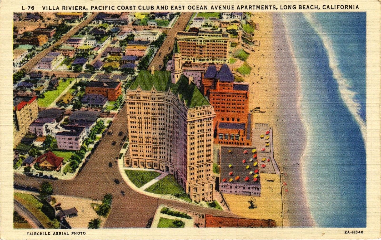 DR JIM STAMPS US VILLA RIVIERA CLUB & APTS LONG BEACH CALIFORNIA LINEN POSTCARD