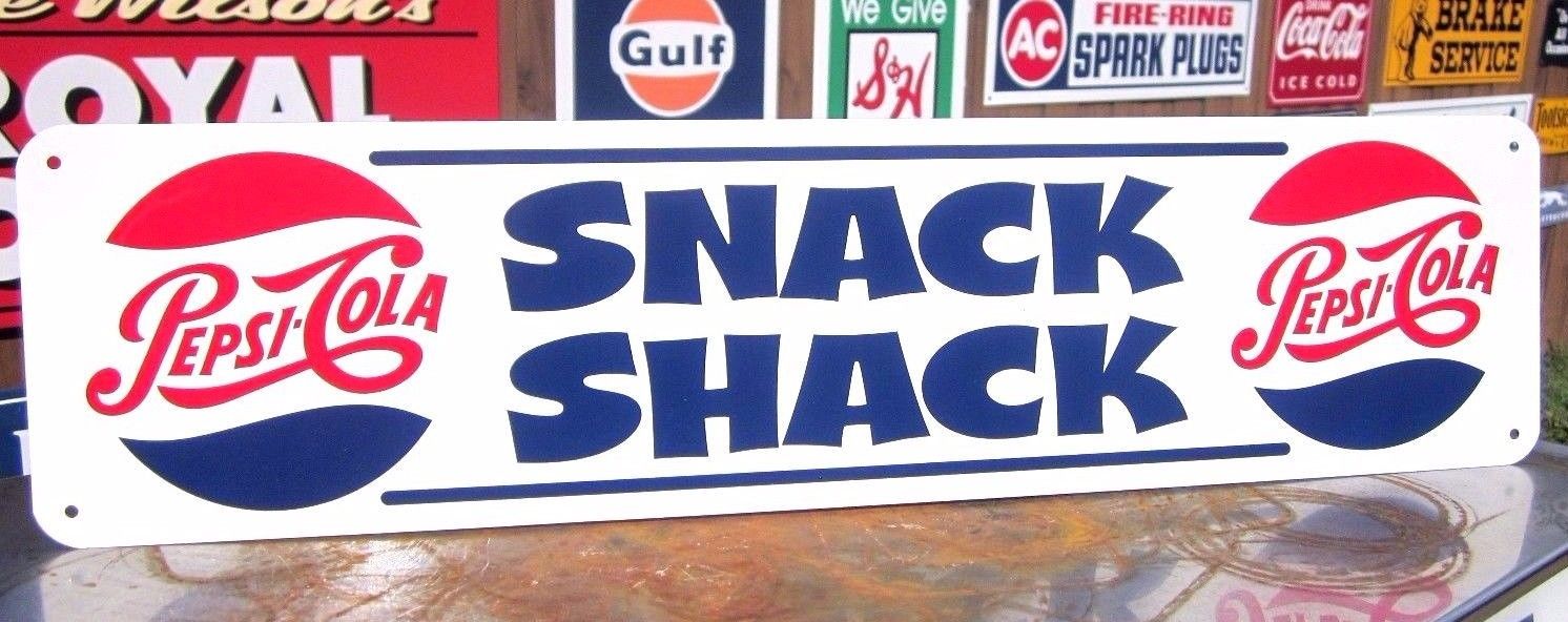 Title (ebay affiliate link): PEPSI - COLA SNACK SHACK SIGN PEPSI CONVENIENCE STORE LUNCH BREAK TIME DINER