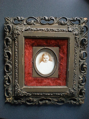 Antique Victorian Picture Frame Wood Ornate Gilt Velvet Brass Sepia Childs Photo