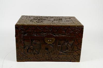 Vintage Chinese Hand Carved Wooden Trunk Trinket Chest Box
