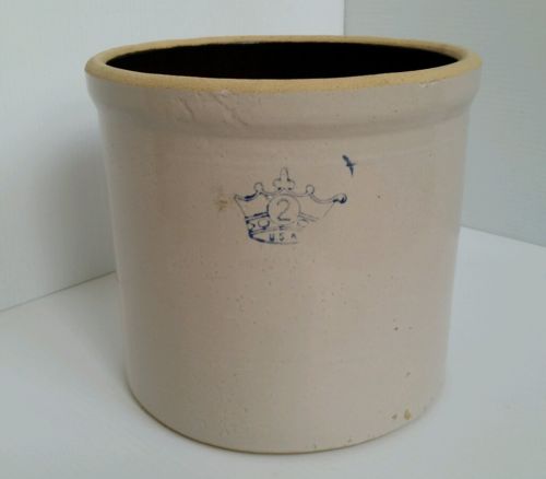 Title (ebay affiliate link): Vintage Blue Crown 2 Gallon Stoneware Crock Brown Salt Glaze Pickling Primitive