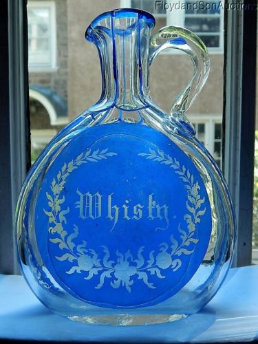 Title (ebay affiliate link): 1800s Pontil Flint Chestnut WHISKY Flask Back Bar Applied Handle Label Ewer