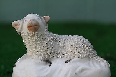 SUPERB 19thC STAFFORDSHIRE RECUMBENT SHEEP WITH APPLIED CHIPPED DECOR c1880s