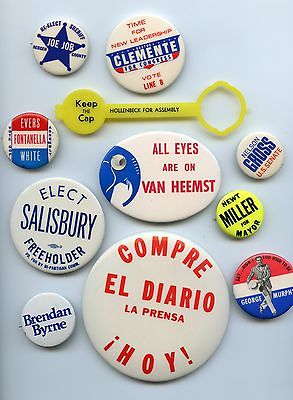 11 Assorted Pinback Campaign buttons (Mostly NJ 1970's)