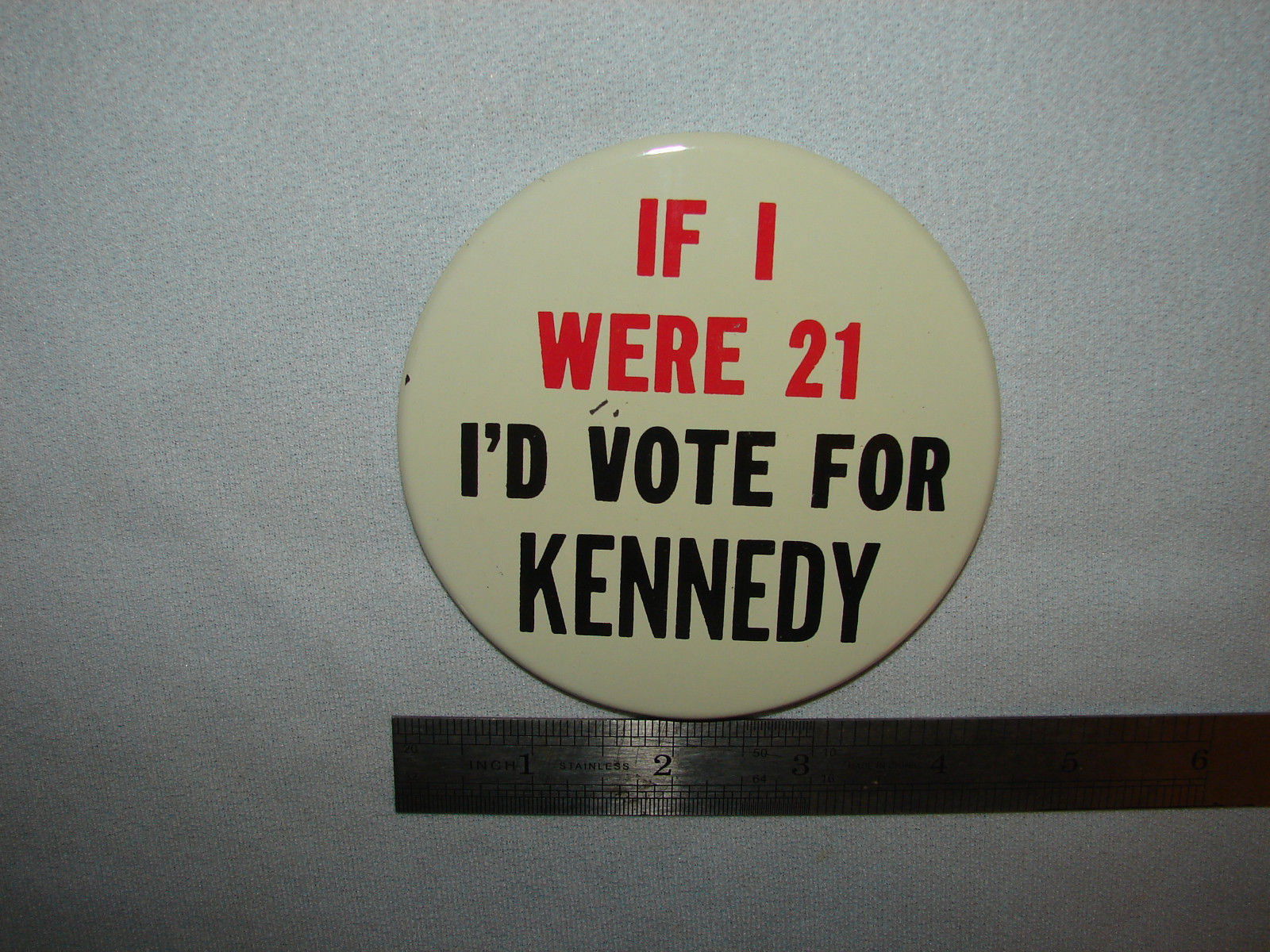 Title (ebay affiliate link): 1960 John F Kennedy Presidential Pinback - If I were 21 I'd vote for Kennedy 4"