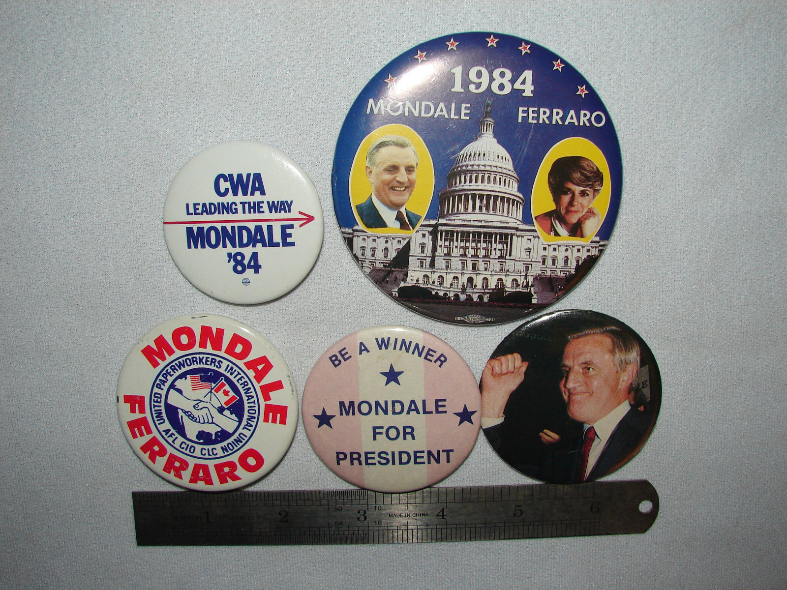 Title (ebay affiliate link): 1984 Walter Mondale/Geraldine Ferraro Presidential political pinback lot