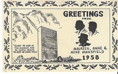 POSTCARD GREETINGS FROM MAUREEN, ANNE & SENATOR MIKE, MANSFIELD 1958