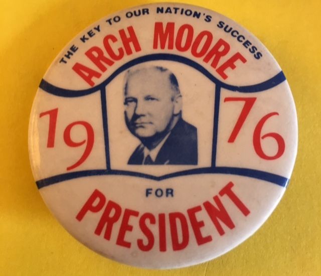 Title (ebay affiliate link): Arch Moore (West VA) for President 1976 Campaign 2 1/4 Inch Pin Pinback Button