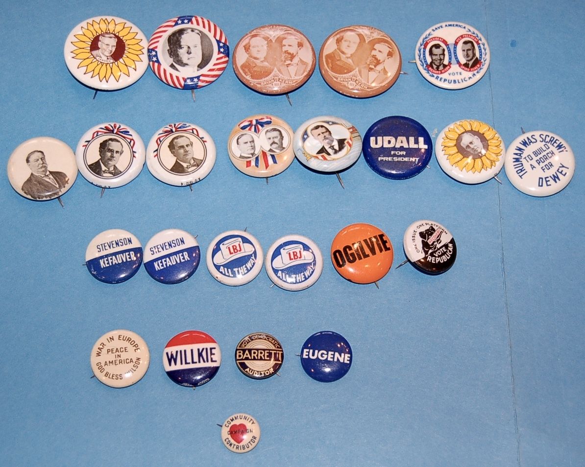 Title (ebay affiliate link): 24 Vintage Assorted Political Pinback Buttons