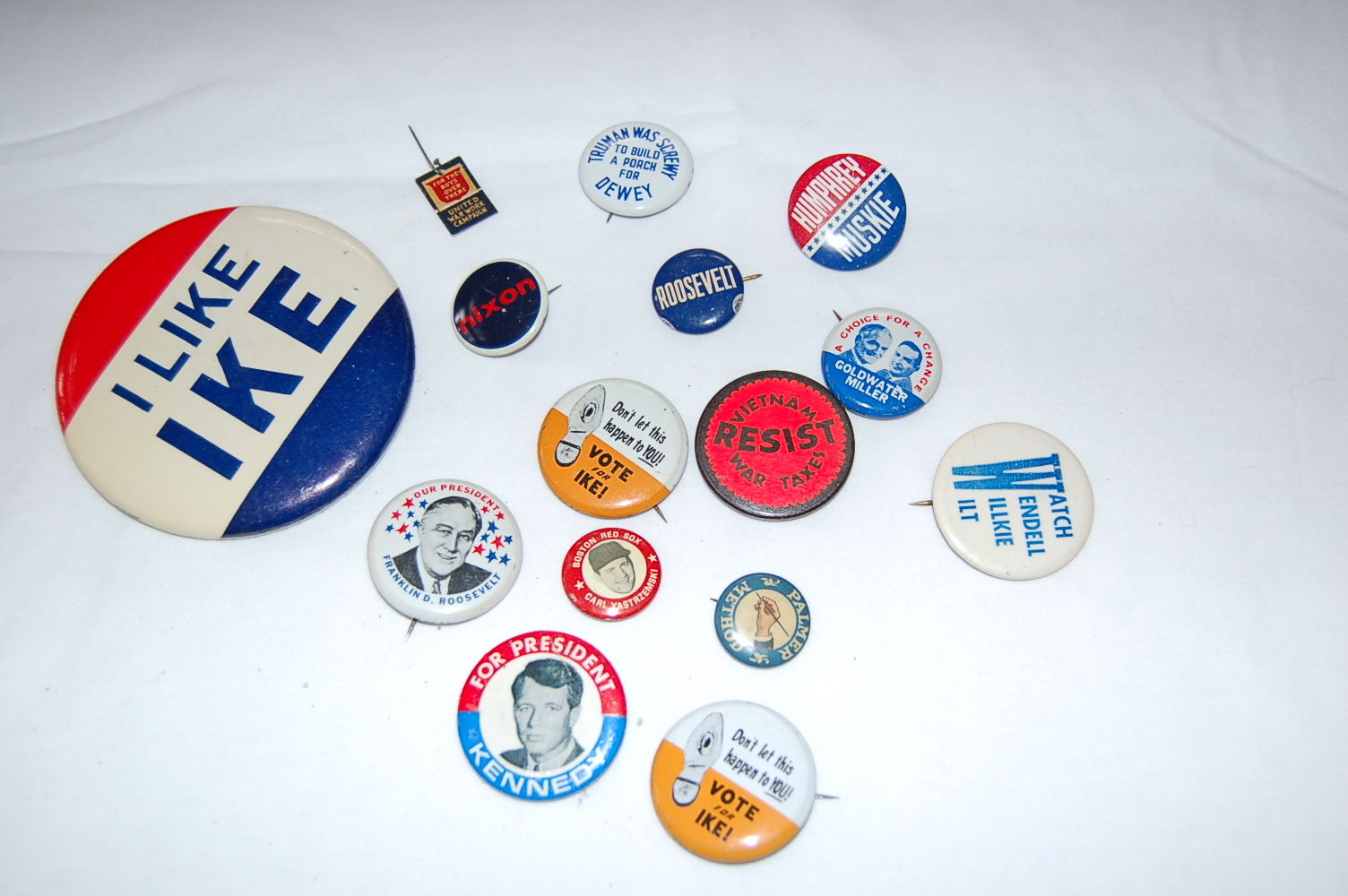 Title (ebay affiliate link): 15 Vintage Assorted Political Pinback Buttons