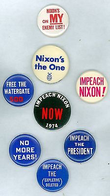 Title (ebay affiliate link): 8 Vintage 1970's Anti Nixon & Watergate Pinback Buttons - Impeach The President