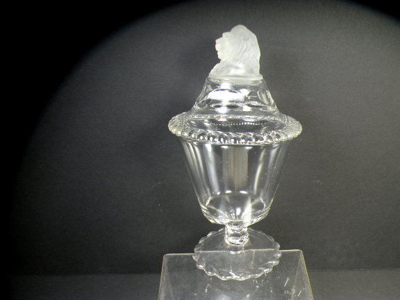 Title (ebay affiliate link): 2PC EAPG WESTWARD HO PATTERN LION FINIAL CRIMPED TOP GILLINDER & SON COMPOTE
