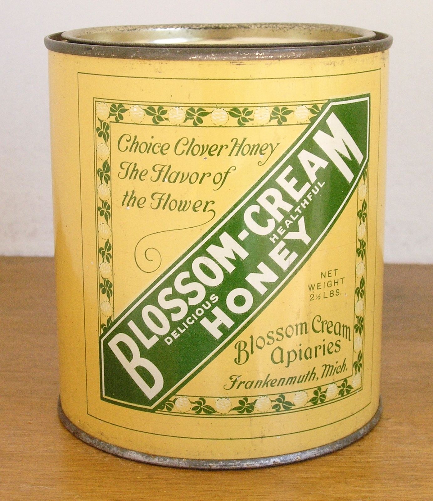 1900's Blossom Cream Honey Tin Frankenmuth MI Michigan Merchandise Advertising