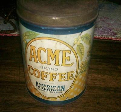 Vintage ACME 1 Lb Steel Cut 6" Tall Litho Coffee Tin /1930s?