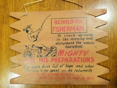 Antique 1940s wooden fishing sign