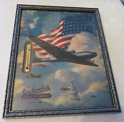 Old Advertising Thermometer Colombo Bakery Oakland CA WWII Planes American Flag