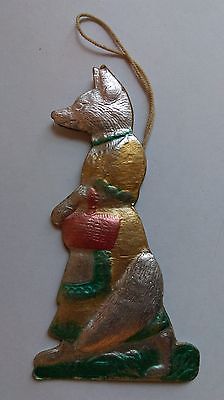 Antique CHRISTMAS Dresden pressed cardboard ornament FOX with BASKET