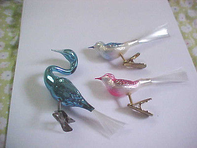 Title (ebay affiliate link): 3 VINTAGE ? GLASS CLIP-ON BIRD/GOOSE CHRISTMAS ORNAMENTS SPUN GLASS TAILS