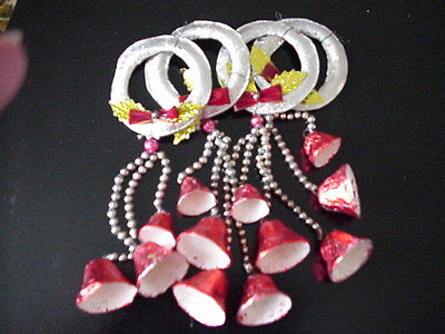 1950's Christmas Ornaments / Foil On Papier - Mache Christmas Bells