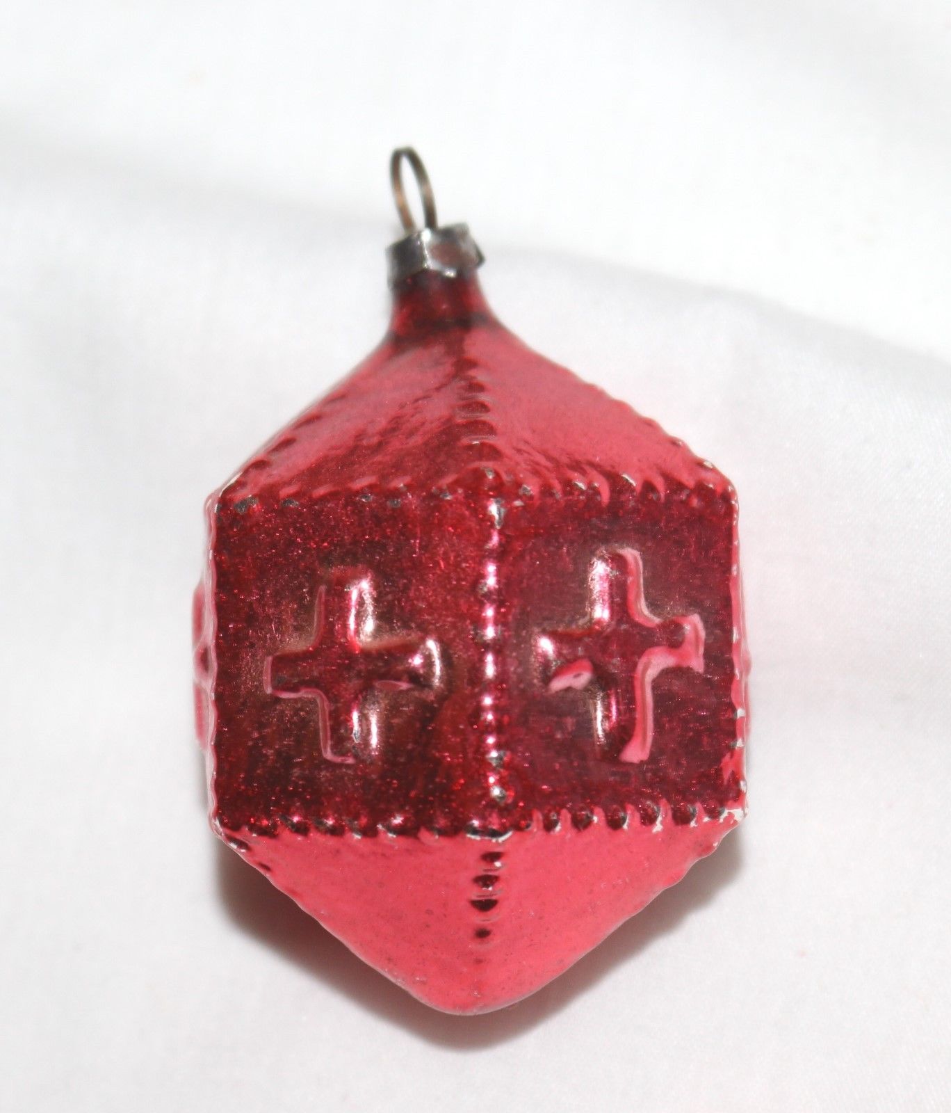 Title (ebay affiliate link): Octagon Geometric with Cross. Red Lacquered. 1920s German Glass Ornament.