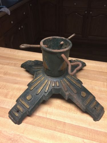 Title (ebay affiliate link): Vintage Ornate Cast Iron Christmas Tree Stand- Golden Cross- Nice