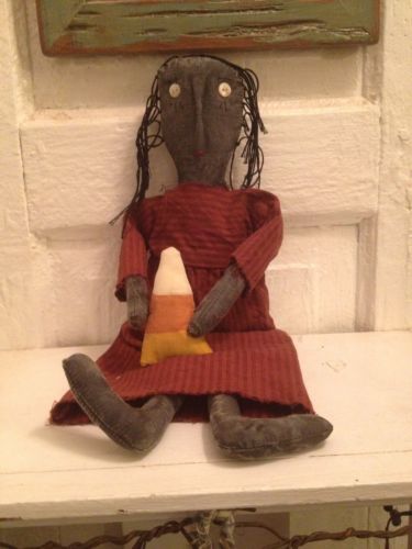 Title (ebay affiliate link): Raggedy Handmade Primitive Doll With Candy Corn
