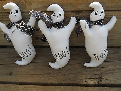 Primitive White Halloween Boo Ghost Ornies Bowl FIllers Decor Set Of 3