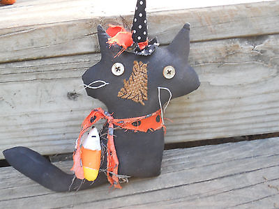 Primitive Grungy Black Halloween Witch Kitty Cat Ornie Bowl Filler Decor
