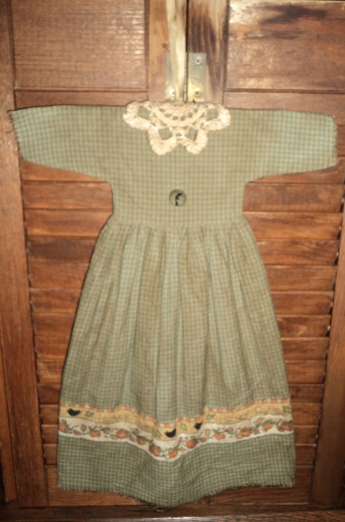 Title (ebay affiliate link): GRUNGY~PRIMITIVE WALL~CUPBOARD~DOLL DRESS GREEN HOMESPUN & CROWS FOLK ART DECOR