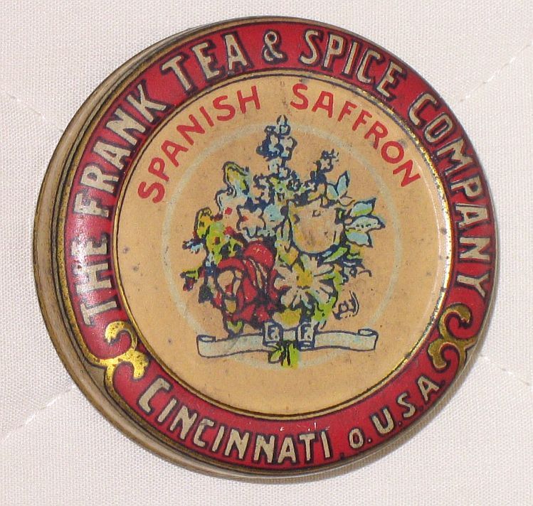 Vtg Advertising FRANK TEA SPICE TIN Cincinnati OH Ohio SPANISH SAFFRON