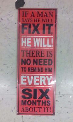 IF A MAN SAY'S HE CAN FIX IT METAL SIGN WITH RAISED LETTERS 14 BY 4 INCHES
