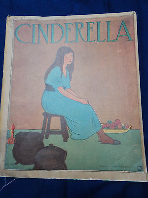 Vintage CINDERELLA Hurst Publishing 1918 Large Illustrated linen book