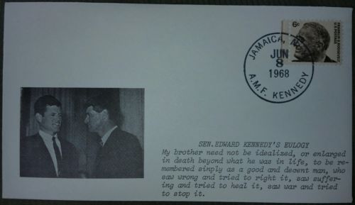 RARE ROBERT F KENNEDY FDC COVER POSTMARKED DAY OF FUNERAL 6/8/1968 ASSASSINATION