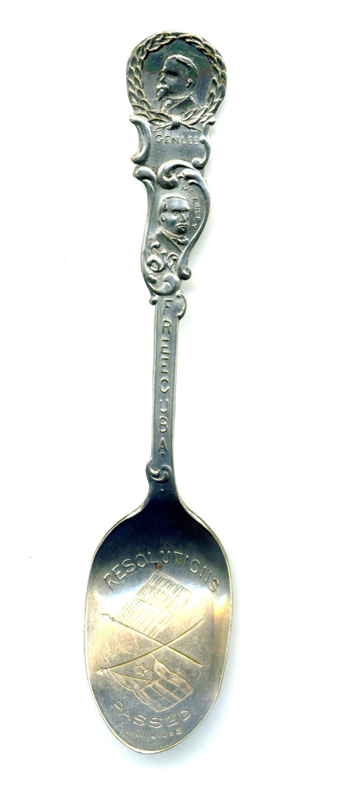 WIIILIAM McKINLEY & FITZ HUGH LEE FREE CUBA SOUVENIR SPOON SPANISH AMERICAN WAR