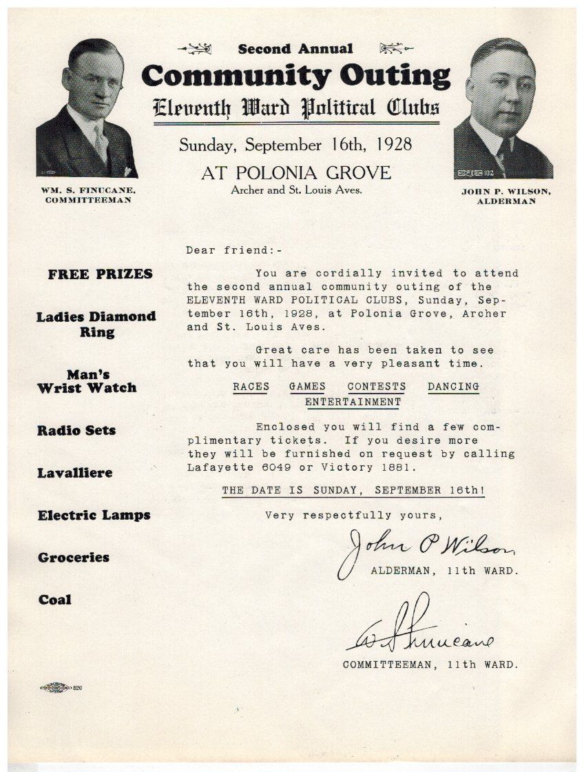 Title (ebay affiliate link): 1928 CHICAGO ILLINOIS 11th Ward Alderman John Wilson Polonia Grove Outing